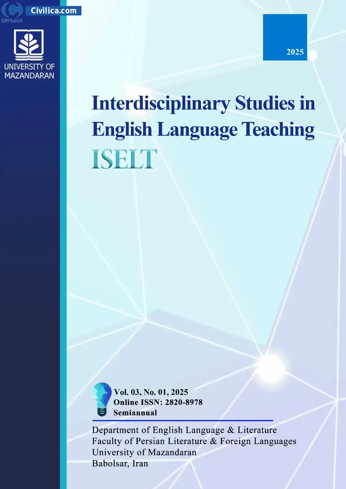 Interdisciplinary Studies in English Language Teaching (ISELT) is an open-access, double-blind, peer-reviewed journal that has been owned, managed, and published semiannually by the University of Mazandaran since 2023. The journal publishes original, full-length articles, reviews, short papers, and case studies covering various areas of English Language Teaching (ELT) (see “Aims and Scope”).